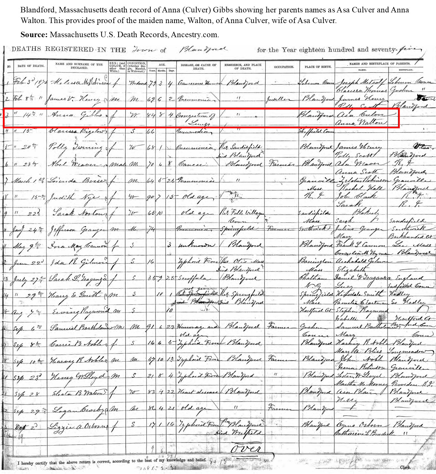 Barbour Collection. (Pre-1850). The Barbour Collection of Conecticut Town Vital Records. Bellantoni, N. (2013, March 19). New England Vampire Folk Belief: Archaeological Evidence. A lecture sponsored by Quinnipiac University's College of Arts and Sciences. Hamden, Connecticut. Retrieved from https://www.youtube.com/watch?v=jiCKJBHdNgo Bellantoni, N. F., Sledzik, P. S., & Poirier, D. A. (1997). Rescue, Research, and Reburial. In D. A. Poirier, & N. F. Bellantoni (Eds.), In Remembrance: Archeology and Death (pp. 131-154). Westport, Connecticut: Bergin & Garvey. Bellantoni, N., & Poirier, D. A. (1995). Family, Friends, and Cemeteries. (N. P. U.S. Department of the Interior, Ed.) Cutural Resources Management, 18(1), 29-31. Canterbury Vital Records. (1696-1820). Canterbury Connecticut Births, marriages, deaths. Volume 1 1696-1820, Family History Library Film #007730763. Caulfield, E. (1937, March). Dr. John Walton, Yale 1720. Yale Journal of Biology and Medicine, 9(4). Caulkins, F. M. (1866). History of Norwich, Connecticut from its possession by the Indians, to the year 1866. Published by the author. Connecticut Probate Records. (1609-1999). Probate Files Collection, Early to 1880. (Ancestry.com, Ed.) Connecticut, Wills and Probate Records, 1609-1999. Daniels-Higgenbotham, J., Gorden, E. M., Farmer, S. K., Spatola, B., Damann, F., Bellantolli, N., . . . Marshall, C. (2019). DNA Testing Reveals the Putative Identity of JB55, a 19th Century Vampire Buried in Griswold, Connecticut. Genes, 10(9), 636. Find a Grave. (1995). https://www.findagrave.com/ Giorgi, V. D. (1984). Colver-Culver Family Genealogy. Santa Maria, California: Privately published by the author. Hale, C. R. (1932-5). Hale Collection of Cemetery Inscriptions and Newspaper Notices, 1629-1934. Hartford, Connecticut: Connecticut State Lbrary. Hale, C. R. (1932-5). Hale Collection of Connecticut Cemetery Records. Hanley, C. (1992, September 10). Descendents attend reburial of 25. Meriden Record-journal. Knox, G. L., & Ferris, B. B. (2022). Connecticut Divorces: Superior Court Records for the Counties of New London, Tolland, and Windham, 1719-1910. Berwyn Heights, MD: Heritage Books. Libby, S. (1992, February 16). Cemetery Holds Tales of Vampires. The New York Times, p. 119. Massachusetts Death Records. (1841-1915). Massachusetts, U.S. Death Records 1841-1915. Ancestry.com. Norwich Land Records. (1717-1727). Norwich Land Records, Volumes 3A-4, Family History Library Film # 5025; Image Group Number 8199223. Norwich, Connecticut. Norwich Vital Records. (1640-1834). Norwich Connecticut Births, Marriages, Deaths 1640-1834, Volume 1, Family History Library Film # 007730319. Phillips, D. L. (1918). Griswold Cemeteries. Historical and Descriptive Sketches of Twenty-two Burial Places in Griswold, Connecticut, and St. Mary's Cemetery in Lisbon, Connecticut, with Copies of all the Inscriptions on their Monuments. Porter, G. S. (1985). A Genealogy, the Descendants of Lawrence Walton of Preston, Connecticut Circa 1693. Norwich: Privately Published. Available through the Genealogy Department of the Allen County, Indiana Public Library (reference only) and electronically through several public family trees on Ancestry.com. Ring, R. (2011, November 8). The serendipitous discovery of COOL STUFF in the Watkinson. Retrieved from The Bibliophile's Lair: http://commons.trincoll.edu/watkinson/2011/11/08 Slafter, E. F. (1869). Memorial of John Slafter with a Genealogical Account of his Descendants, including Eight Generations. Boston: Henry W. Dutton & Sons. Warneke, J. (n.d.). Walton History in New England. Privately Published. Warnecke, J. (n.d.). Walton History in New England. Privately Published. |