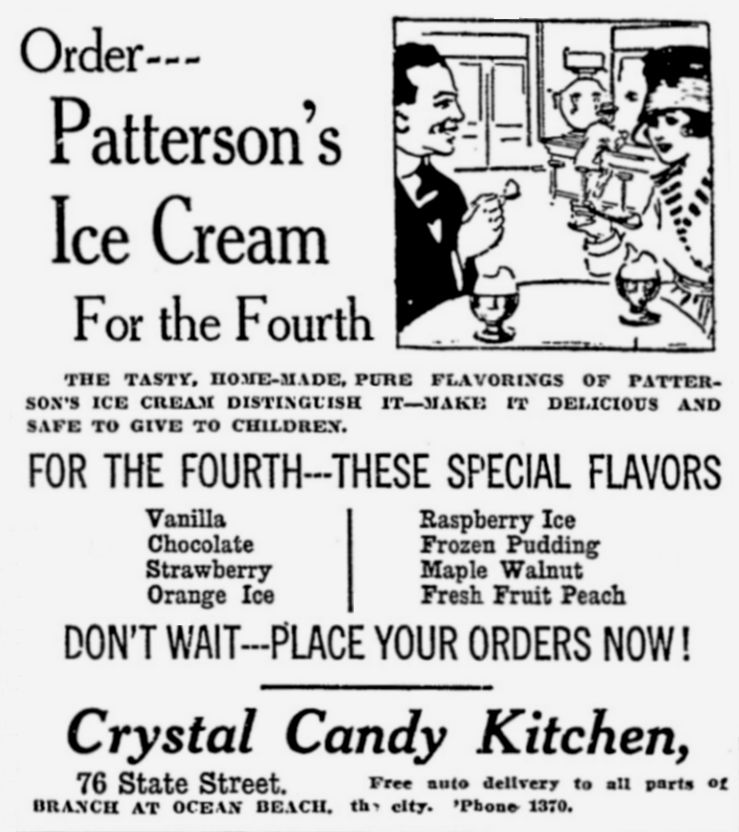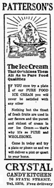 | Advertisements for Patterson's Crystal Candy Kitchen from The New London Day | |||||||