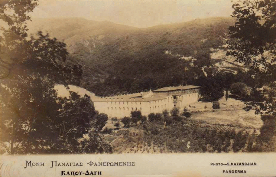 Rex Patterson’s account that Socrates’ father was “a High Priest” was probably based on fact. According to Greek etymology, surnames beginning with “Papa” indicate descent from a Greek Orthodox priest; papa from the Greek word from παπάς or “priest”. The second half of the surname, anagnoste or anagnosti, comes from the Greek word, αναγνώστης, Anagnostis or Anagnostes, which means “one who reads”. It can also refer to the clerical order of “reader” in the Greek Orthodox Church. The 1841 Ottoman Census identifies a Greek Orthodox priest living in Vathy Kyzikus named Papa Dimitri with two sons, Yanakis, age 26, and Anagnostis, age 15. It is believed that Anagnostis, like his father, became a Greek Orthodox priest, thereby giving his descendants the patronymic surname Papanagnosti. He was very likely John Socrates Papanagnosti's grandfather. Rex also reported that Socrates’ father “had a big estate with a castle”. This too may have some basis in fact, as the Panagia Theotokos Faneromeni," or “Kirazli Monastery (Monastery of Cherries)” as it is known in Turkish, is located on the peninsula. The monastery was one of the most significant Greek Orthodox monasteries in Anatolia, containing more than 90 rooms and a notable church. The monastery was abandoned in 1922, possibly coincident with the Greek-Turkish population exchange. |