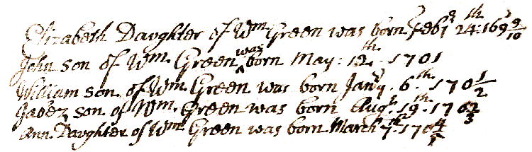William son of Wm Green was born Jany 6th 1701/2