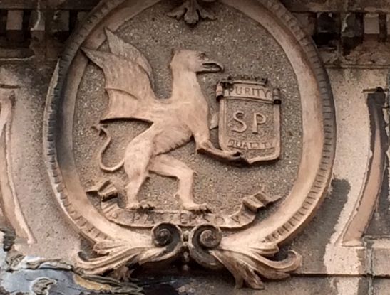 Bas relief above the entrance of Patterson's Crystal Candy Kitchen at